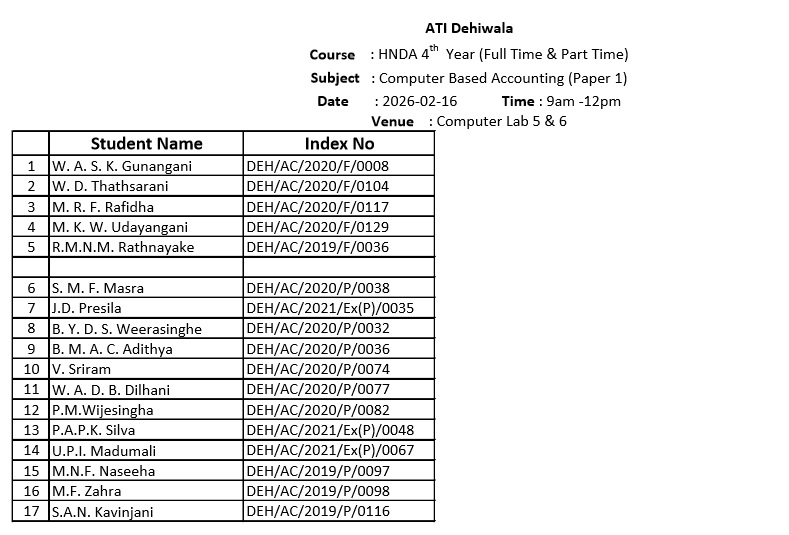 HNDA 4th year Computer Based Accounting Examination Scheduled